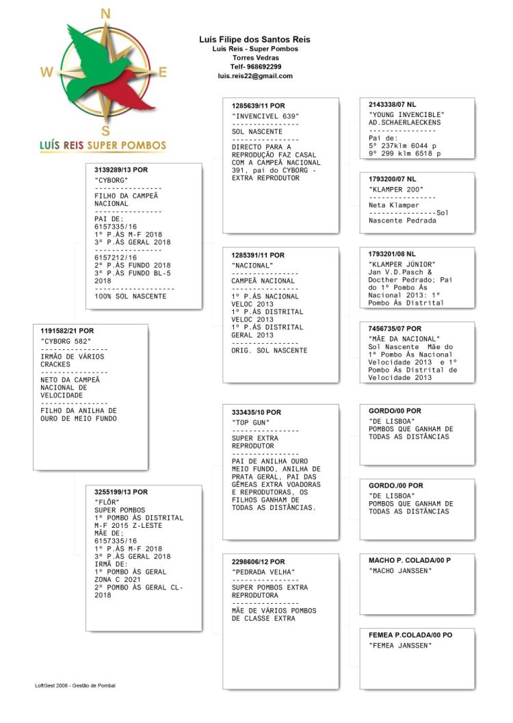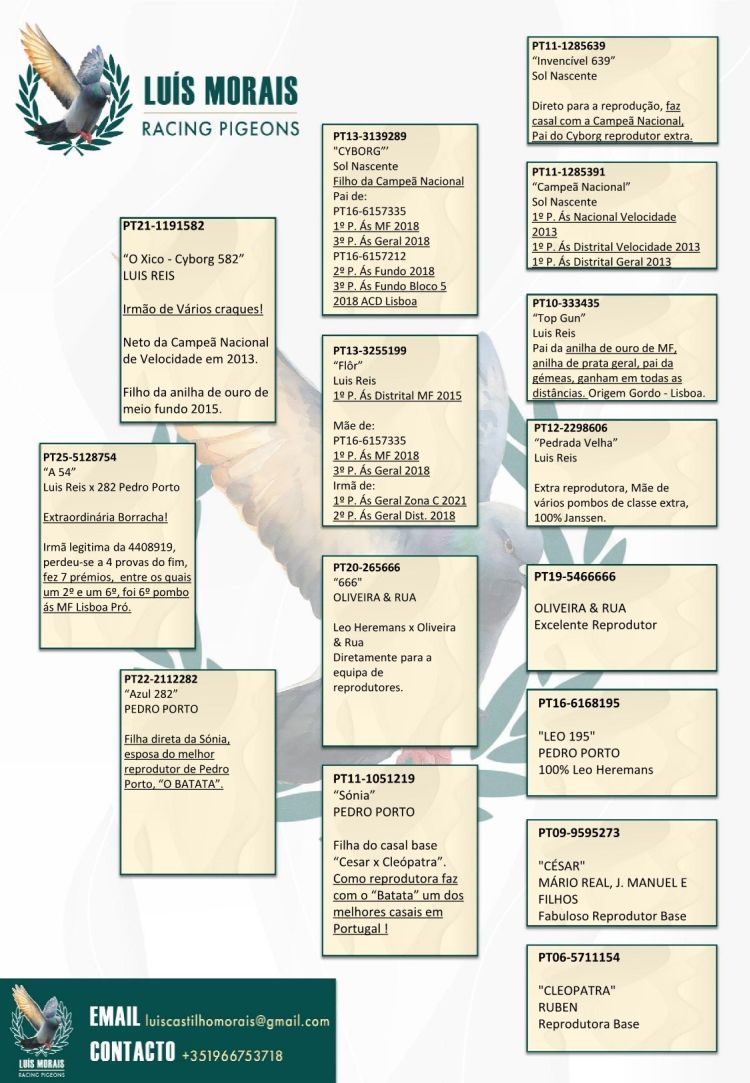 A “54” é fotocópia da sua irmã, PT24-4408919, perdeu-se a 4 provas do fim quando estava no Top 3 dos melhores borrachos da campanha, fez 7 prémios, entre os quais um 2º e um 6º, foi 6º pombo ás MF Lisboa Pró.
