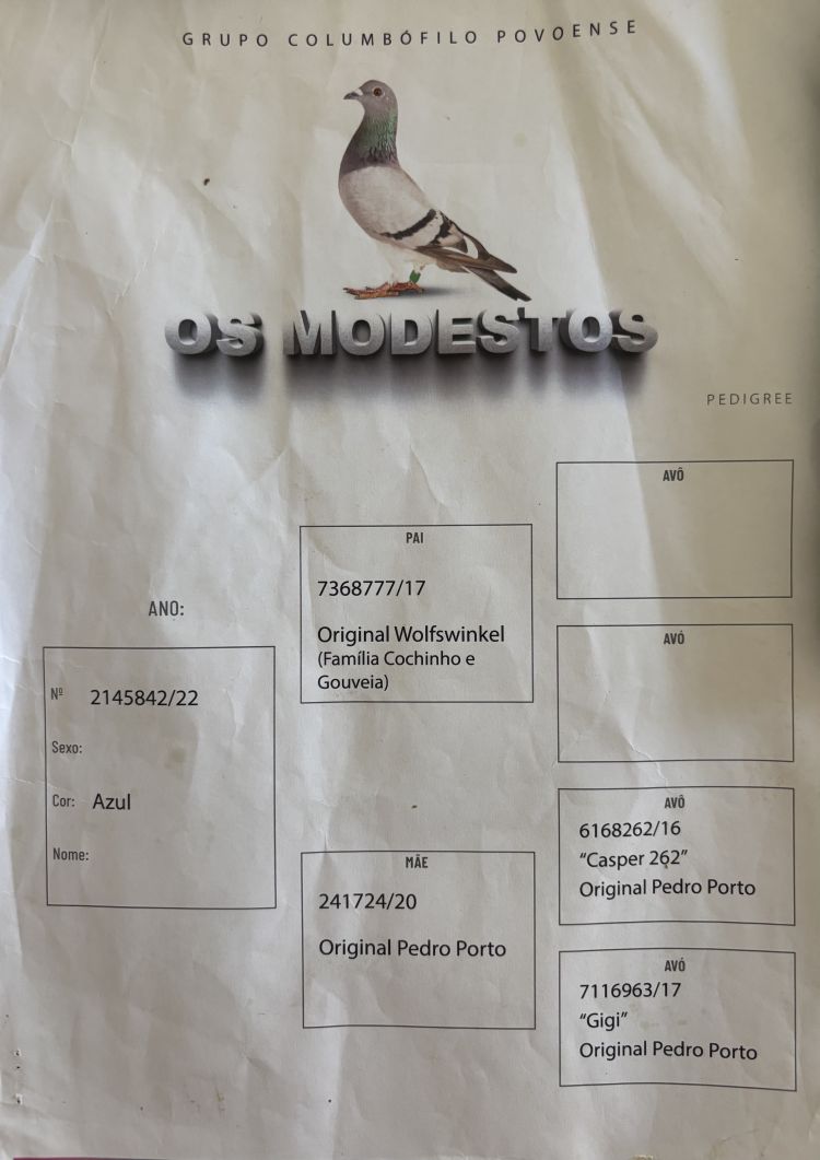 O Pai é um Wolfswinkel (Família Cochinho e Gouveia) X Casper 724 Pedro Porto, é neto “Casper 262” original Pedro Porto