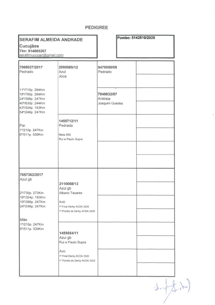 Proprietário: Os Amigos de Cucujaes (593º Final / 862º Pombo Ás)