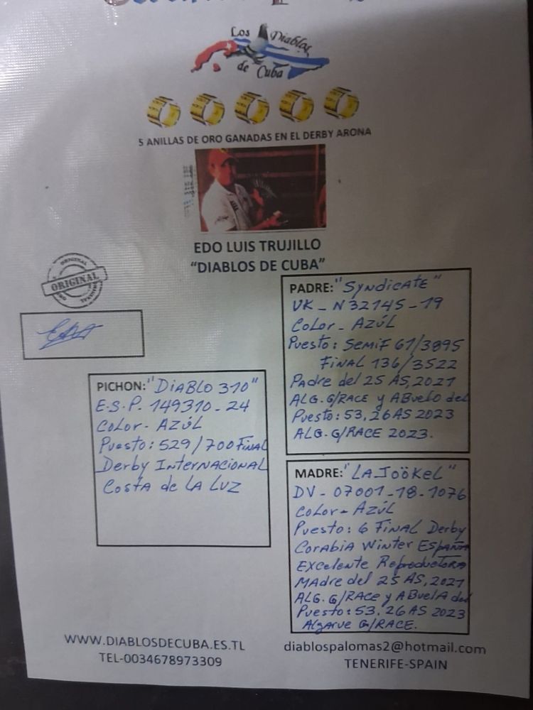 Proprietário: Team Palau-Pamies (523º Final / 270º Pombo Ás)