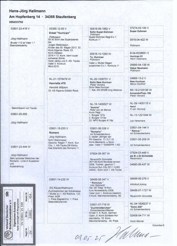 Proprietário: Wir Zwei (670º Final / 882º Pombo Ás)