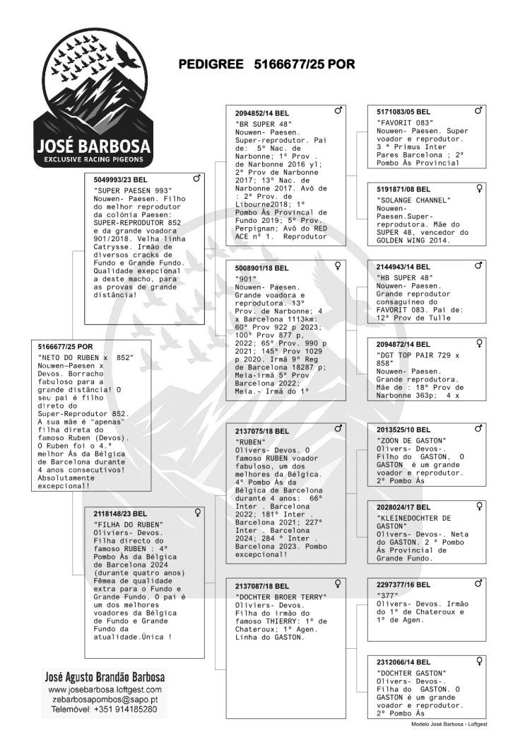 Proprietário: JOSÉ BARBOSA - EXCLUSIVE RACING PIGEONS