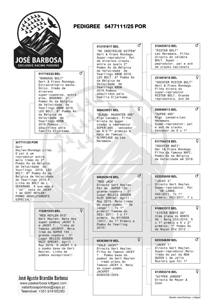 Leilão JOSÉ BARBOSA - EXCLUSIVE RACING PIGEONS