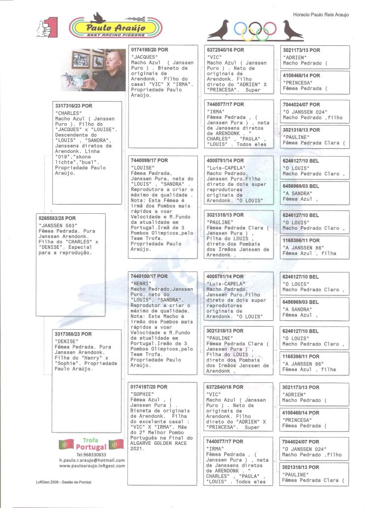 Leilão PAULO ARAÚJO "BEST RACING PIGEONS"