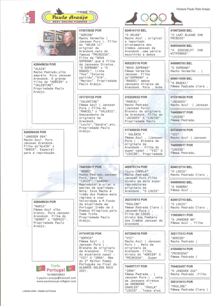 Proprietário: PAULO ARAÚJO - BEST RACING PIGEONS