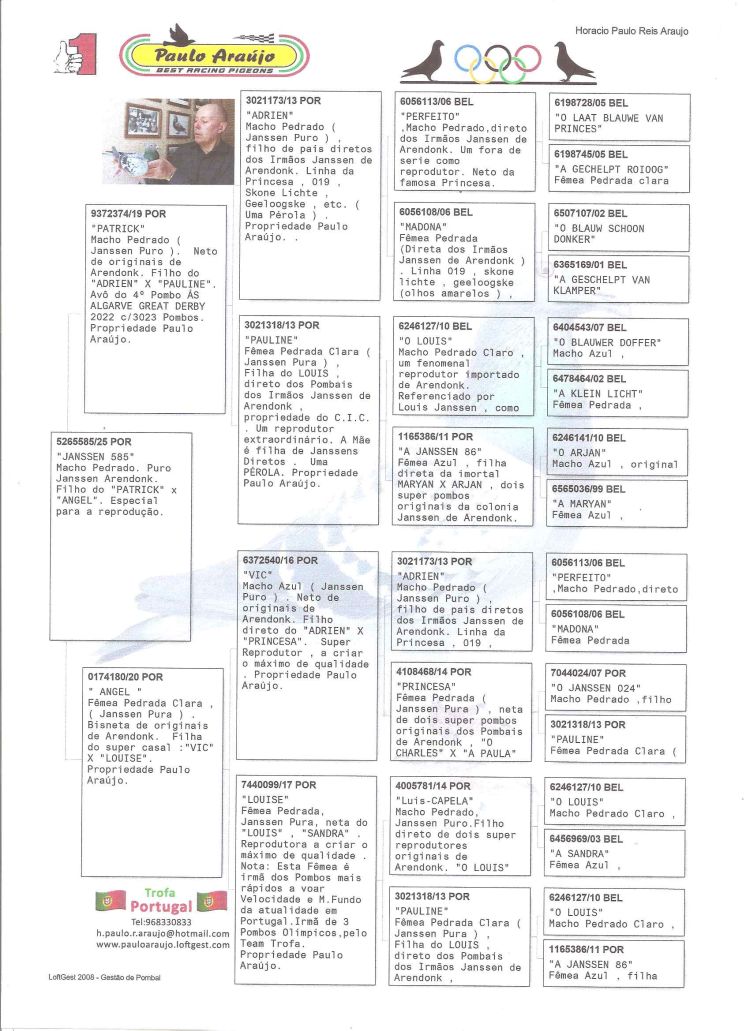 Leilão PAULO ARAÚJO "BEST RACING PIGEONS"