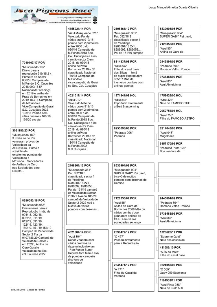 Proprietário: JOCA PIGEONS RACE