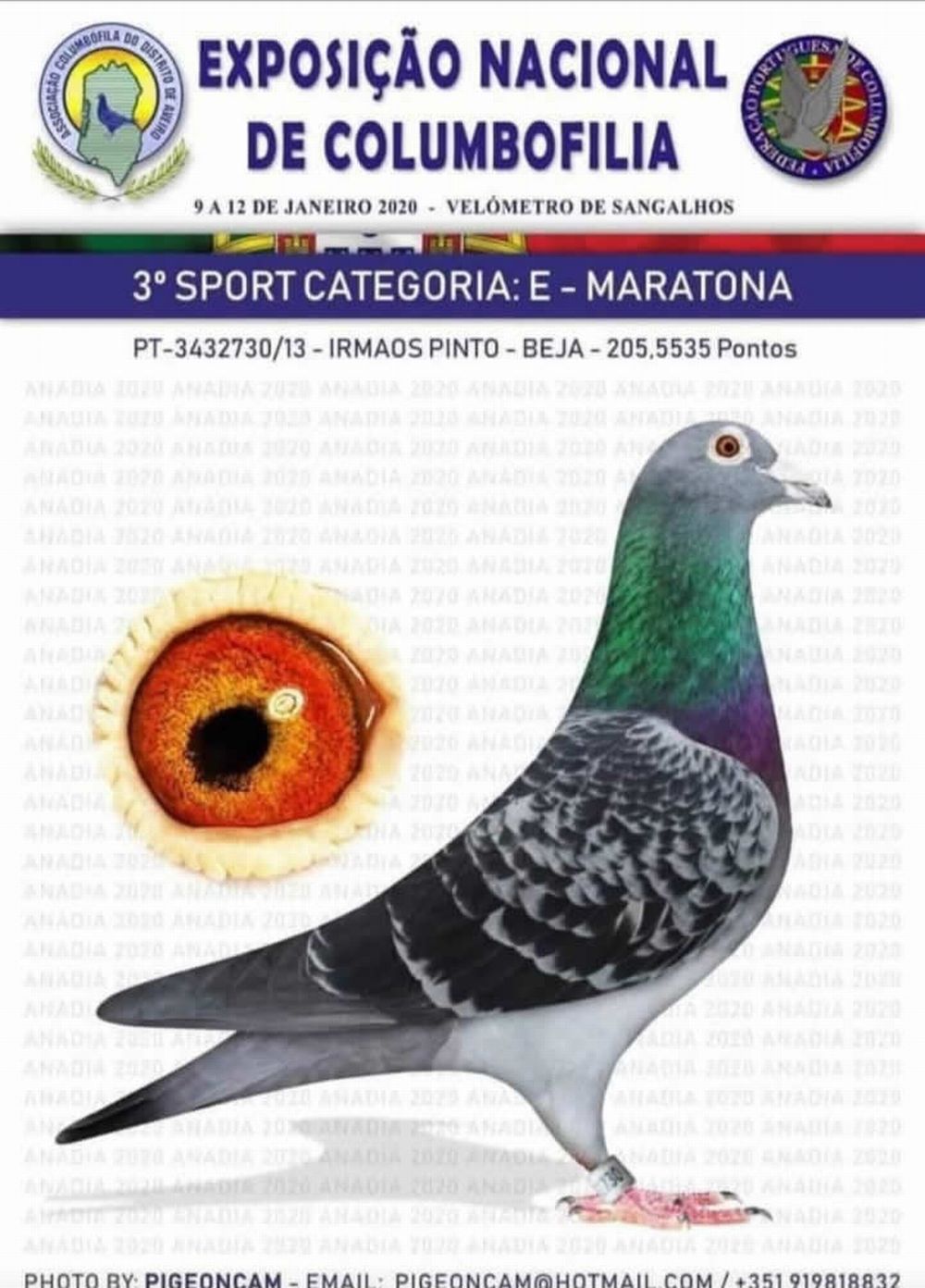 • Anilha Ouro Geral, Anilha Prata Geral, Anilha Ouro Velocidade, Anilha Prata Velocidade, Anilha Prata Meio-Fundo, Anilha Ouro Fundo, Anilha Bronze  Fundo, Anilha Bronze Yearlings.