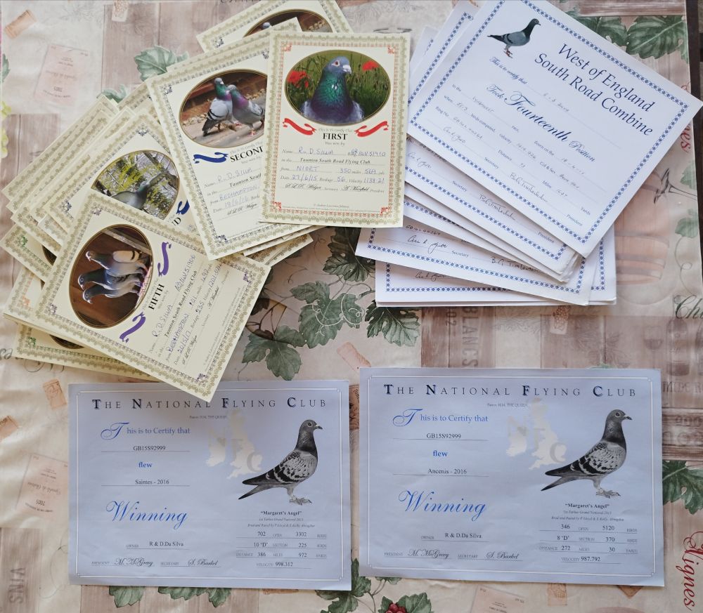 • 17º Classificado Nacional Clássica de Valência no ano de 2016, com o pombo com melhor média a voar + de 700 KM.