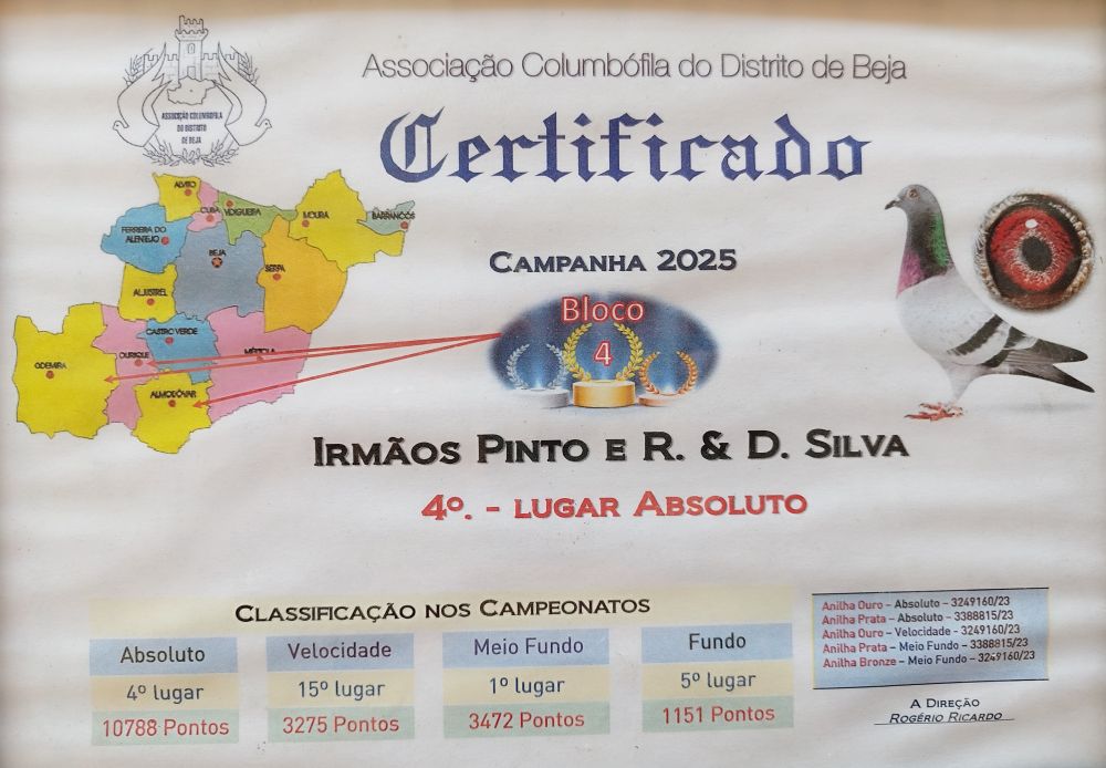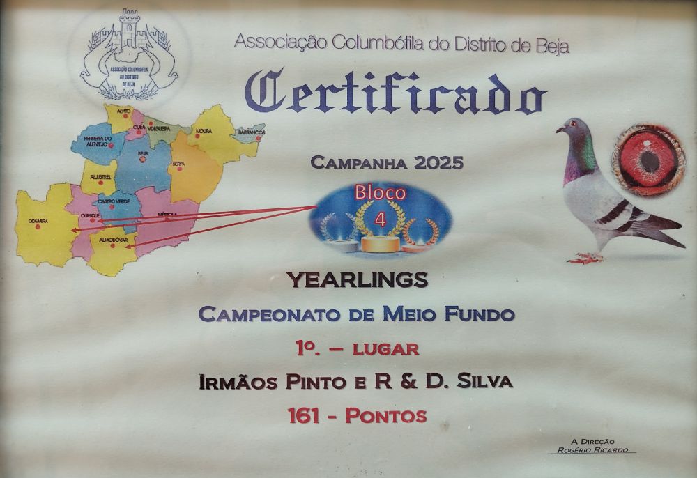 Com uma colónia completamente renovada e com apenas dois anos de existência, a equipa IRMÃOS PINTO E R & D SILVA, encontra-se atualmente a competir na União Columbófila Ouriquense e à doublagem na Sociedade Columbófila Aljustrelense, tendo na época de 2025 alcançado os seguintes feitos: