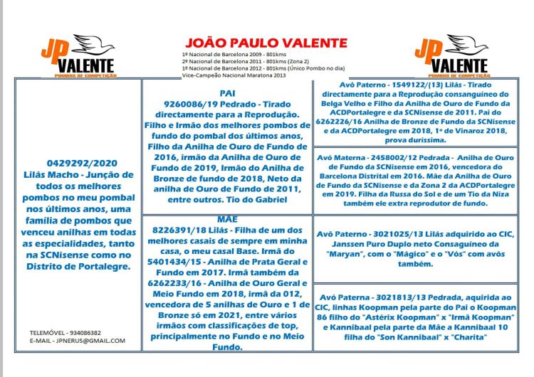 Site Oficial GPLoft - Leilão de Pombos Português | English