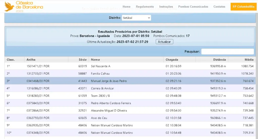 No dia 1 de Julho de 2023, a Columbofilia Portuguesa parou para assistir a um feito notável. Com solta às 05:50h da manhã em Igualada, apenas dois pombos no distrito de Setúbal conseguiram a proeza de entrar no próprio dia.