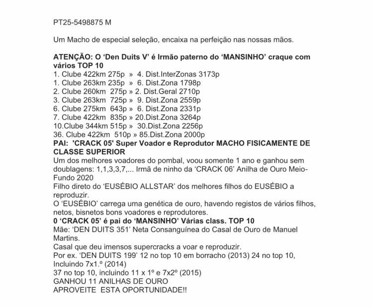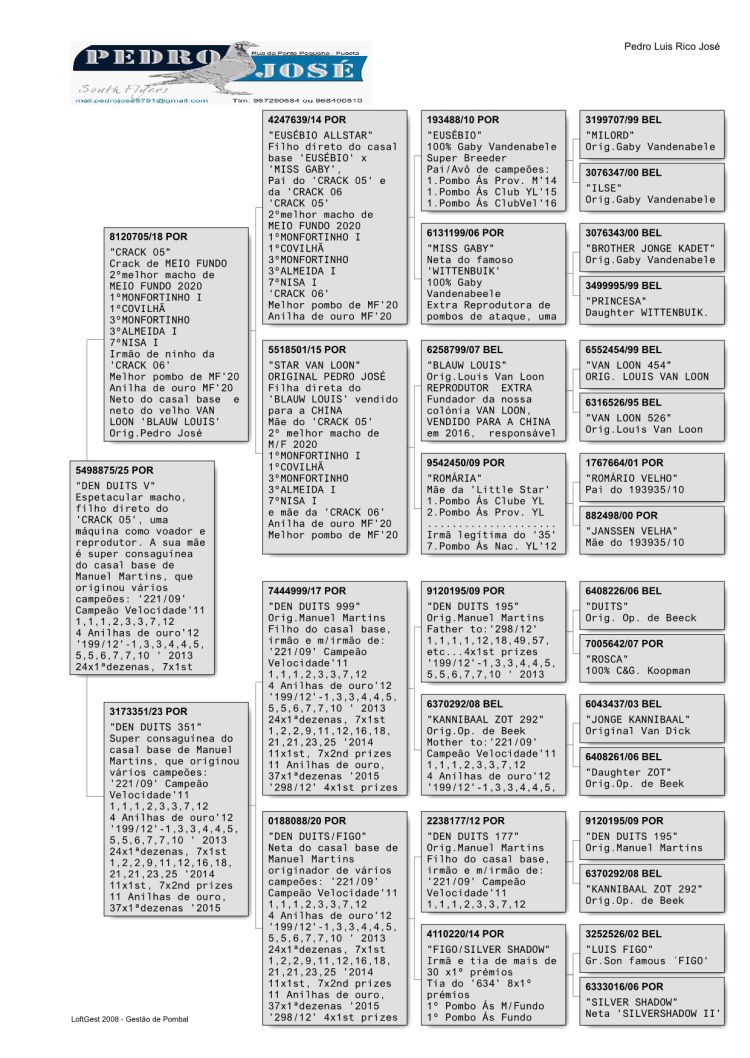 Site Oficial GPLoft - Leilão de Pombos Português | English