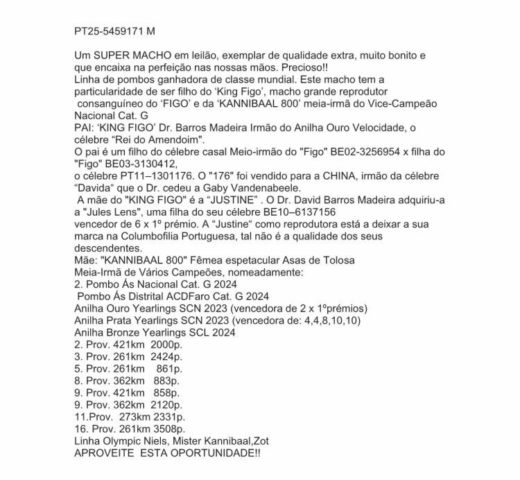 Site Oficial GPLoft - Leilão de Pombos Português | English