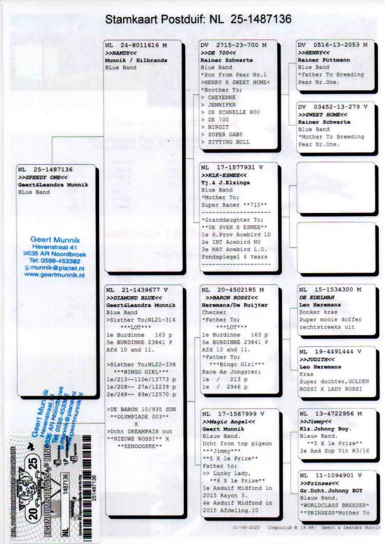 Proprietário: Team Schalen-Bakker (92º Final / ---º Pombo Ás)