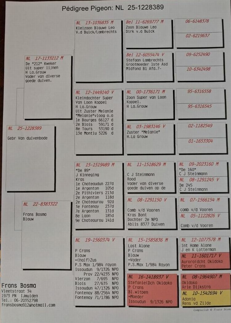 Proprietário: Team Schalen-Bakker (92º Final / ---º Pombo Ás)
