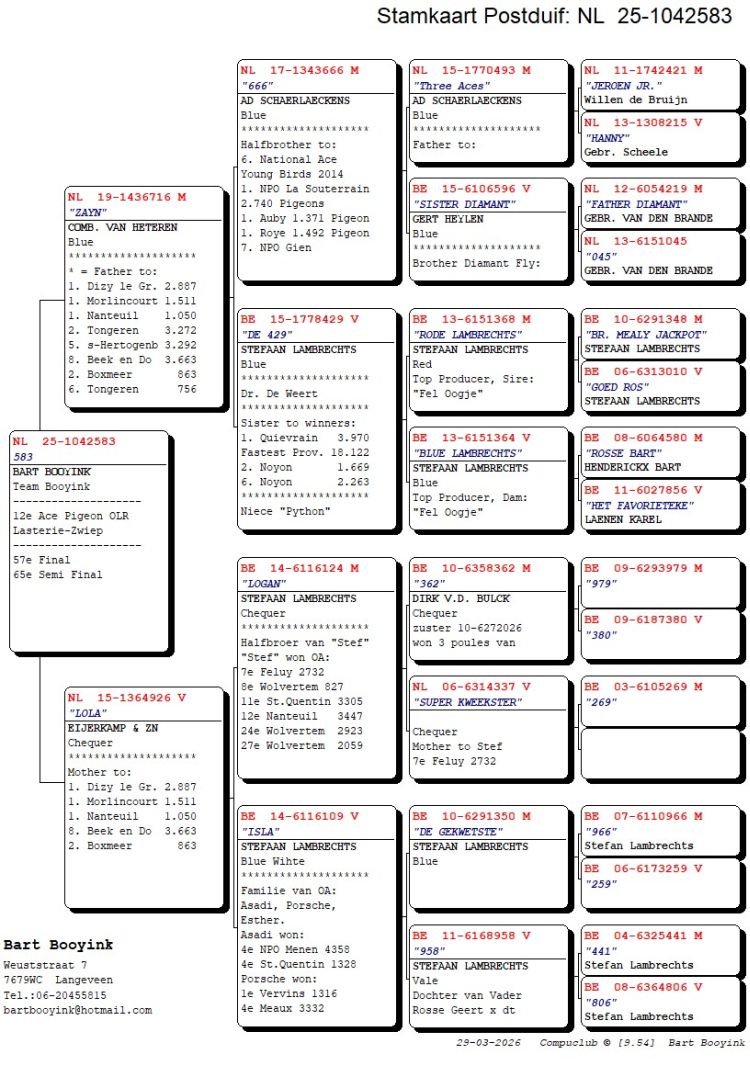 Proprietário: Team Schalen-Bakker (92º Final / ---º Pombo Ás)